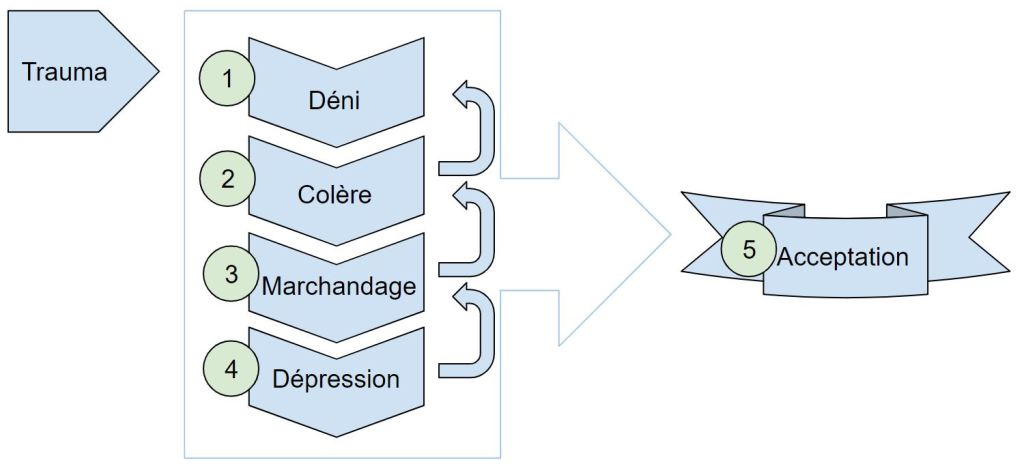 Si je pose maintenant l’hypothèse que les offres liées à l’agilité et plus particulièrement au coaching Agile suivent ce modèle, cela donnerait donc les phases suivantes :